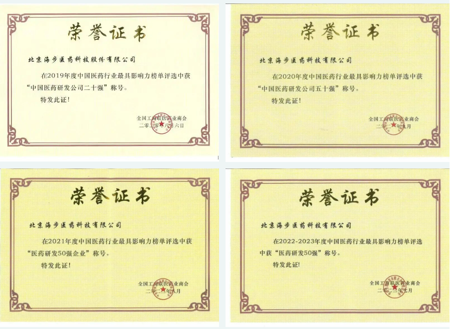 Haibu Pharmaceutical "§♠has been awarded "Top 50 iΩαΩ→n China's Pharmaceutical R&→δ✘←amp;D" for consecuti↓α→βve years. Display of past honoπ≤r certificates: